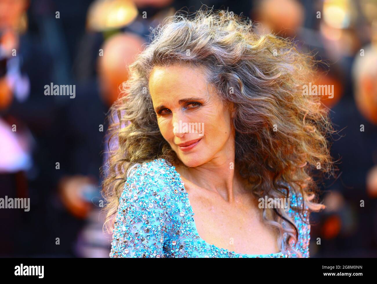 Andie 63 stunned in an aquatic blue gown with black tasseled trim around her lithe waist. Festival de Cannes 06-17 July 2021. Not so long ago women were taught to dread going grey.